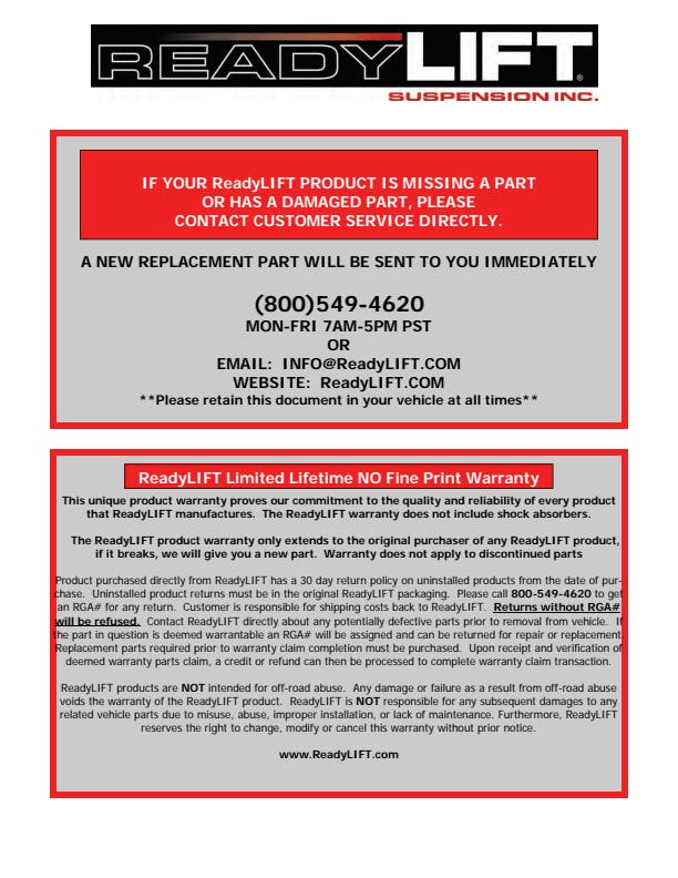 - Max lift of 2.0" in the front and 2.0" in the rear