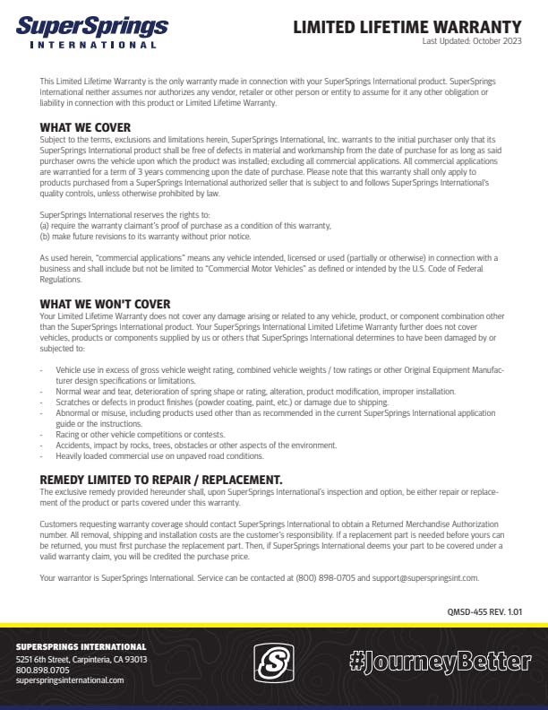 SuperSprings SSR-631-54 One-piece unit attached on one side used as an upgrade to factory bump stops